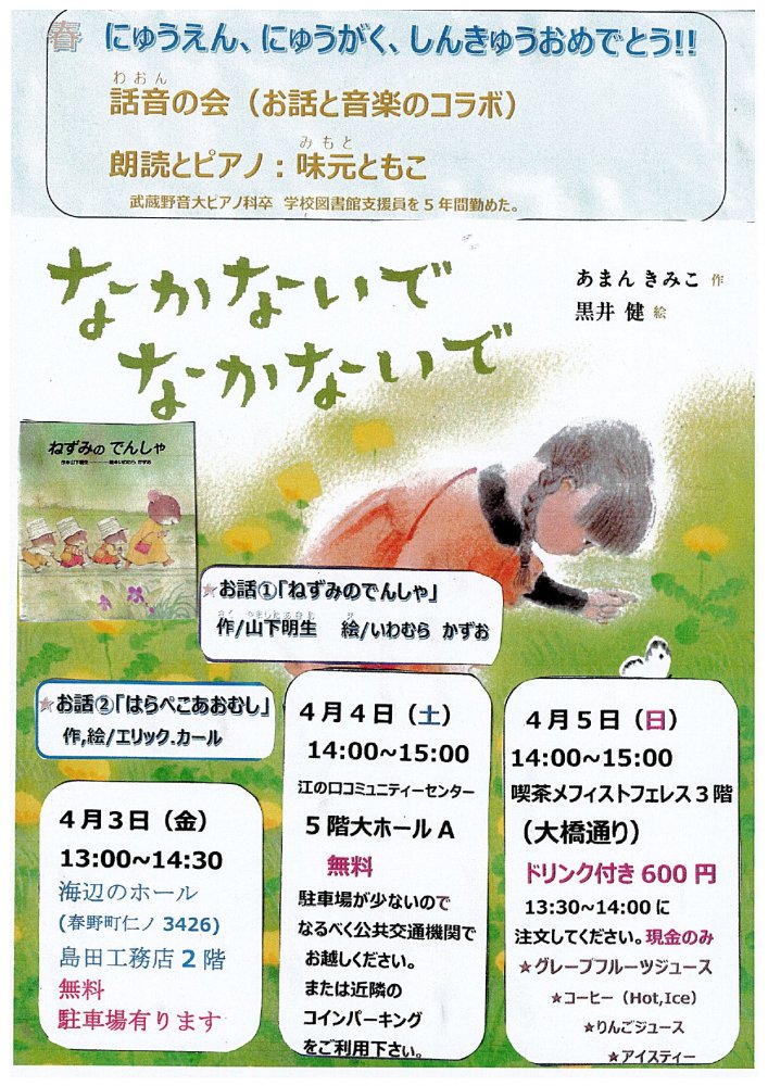 4月3日(金)14時~15時まで 海辺の音楽ホールにて