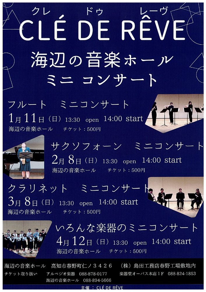 4月12日(日)14時~15時 海辺の音楽ホールにて